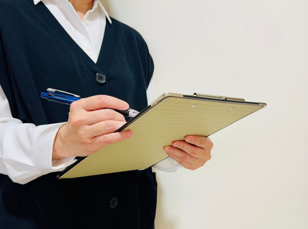 - スタッフがご利用希望日時、ご本人の状態、ご家族のご事情などを伺い、事前準備のご案内をお聞きします。